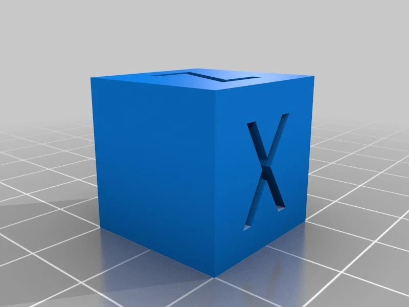 Este é um cubo de calibração simples com as letras X, Y e Z nos respectivos eixos, utilizado para ajustar a precisão da sua impressora 3D. Ao imprimir o cubo e medir suas dimensões, você pode compará-las com os valores esperados. Se a sua impressora permitir, é possível ajustar os passos por mm no firmware usando a fórmula: